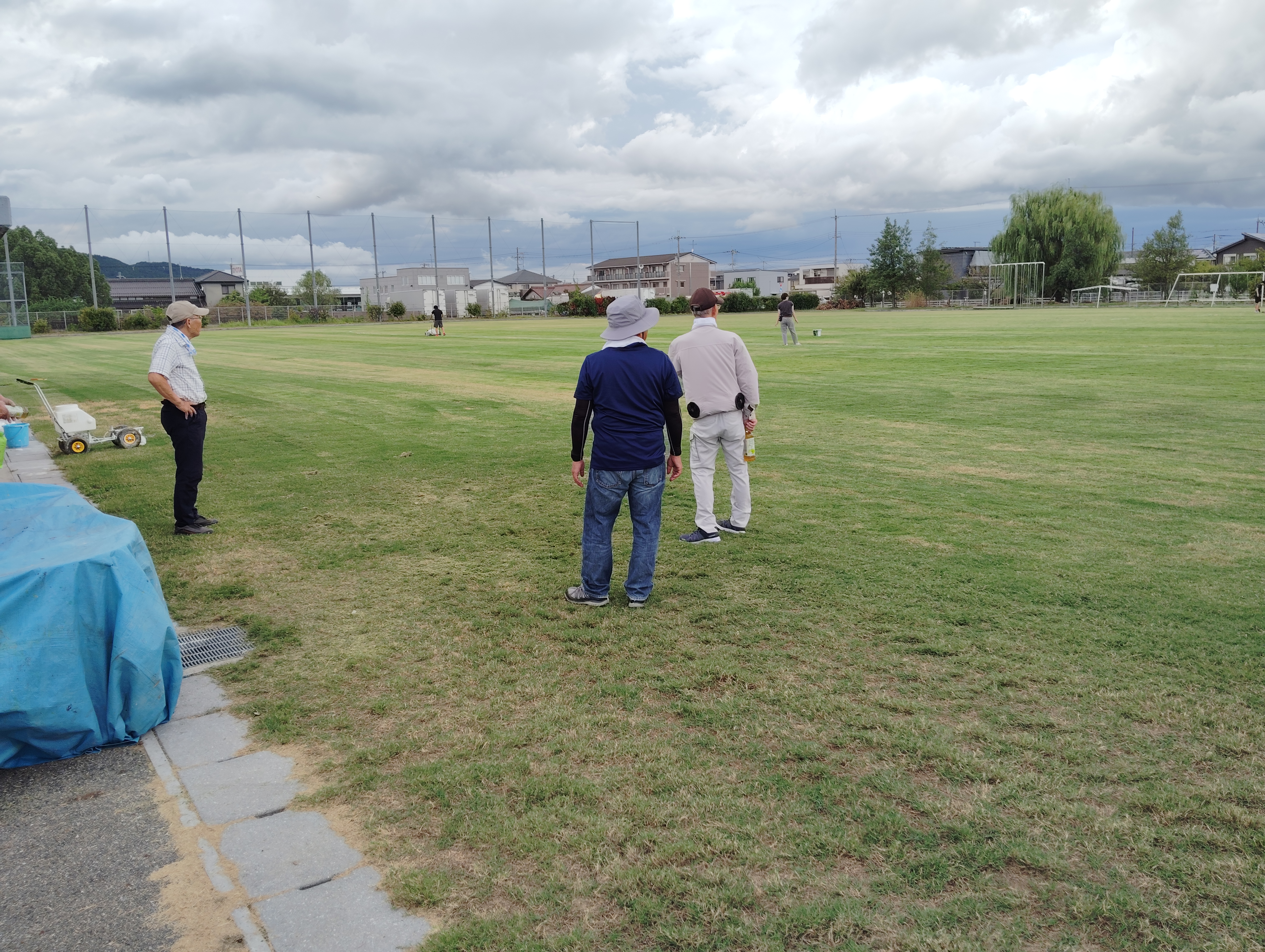 2025年9月11日 予定にはなかったのですが南小芝生管理を実施しました 9月11日(木)16:00より南小の芝生管理を行いました。 予定にはなかったのですが、芝の成長が早いので芝生管理を行いました。 雨が降れば明日に延期する予定だったのですが、結局雨が降りませんでした。 珍しく、気温があまり高くありませんでした。 グランドでは先生方が、運動会のためのラインを引いておられました。