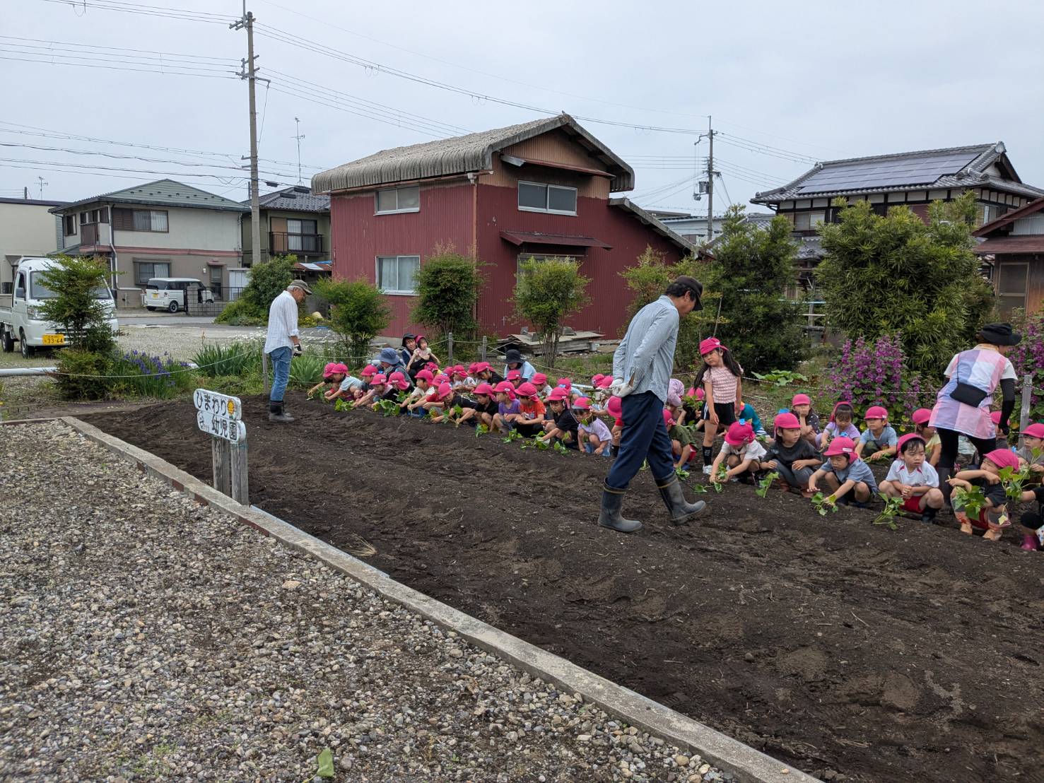 5月21日 ひまわり幼児園の畑でさつまいもの苗を植える 5月21日(水)9時過ぎより、ひまわり幼児園の畑で、園児と先生、まち協のメンバー70名ほどでさつまいもの苗を植えました。 10月ごろに収穫して、11月には子ども森で焼き芋大会を開く予定をしています。
