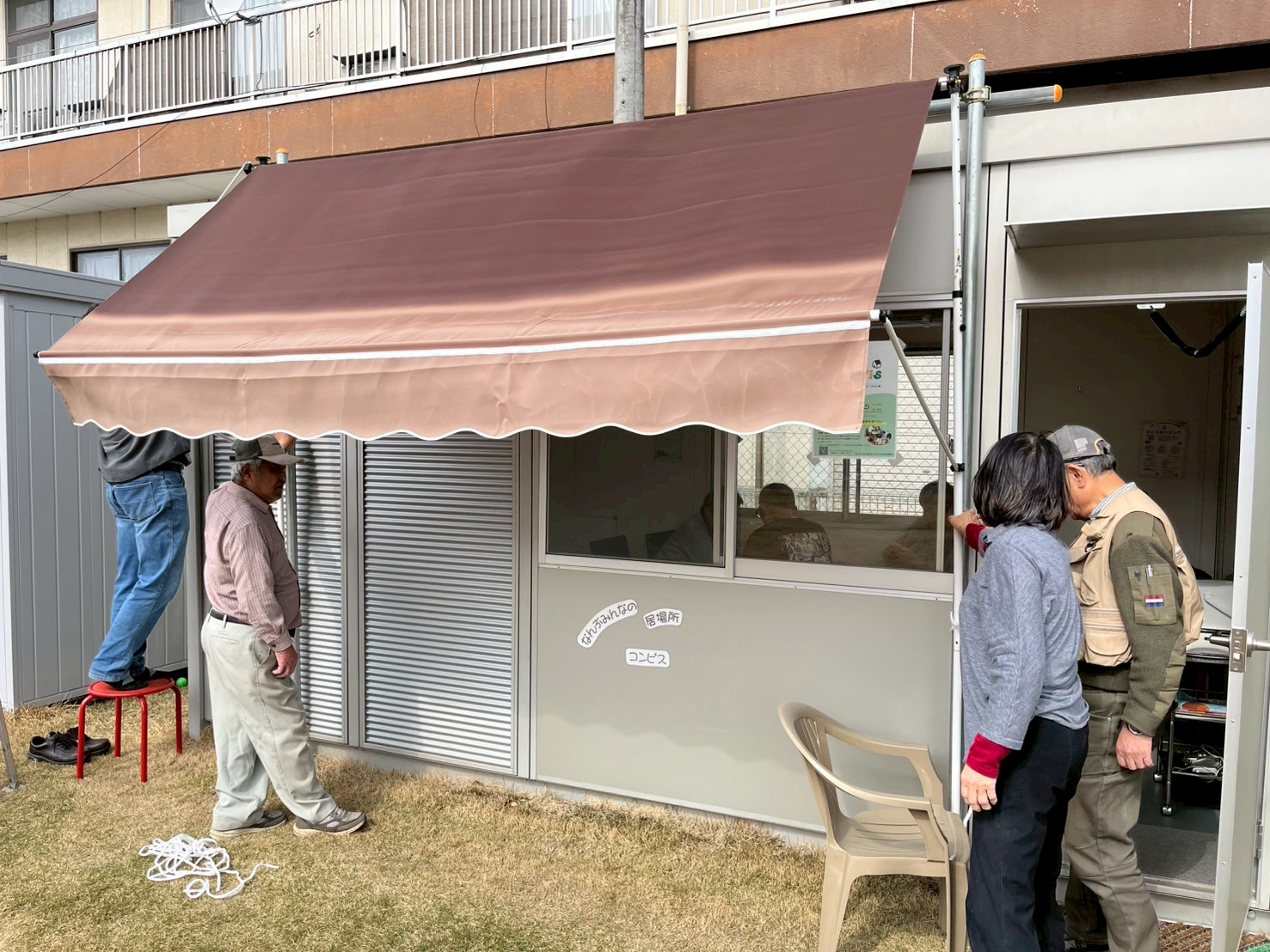 サンシェードを取り付け 4月29日のイベントは昔遊び 4月15日(火)コンピスの家に サンシェードを取り付けていただきました 鳥居さん 町田さん 回渕さんありがとうございました これから暑い日が続くと思われます 助かります 感謝感謝です 今月の29日の祝日は昔遊びのイベントを予定しております 昔の遊び道具や遊びのことを話しして楽しみましょう
