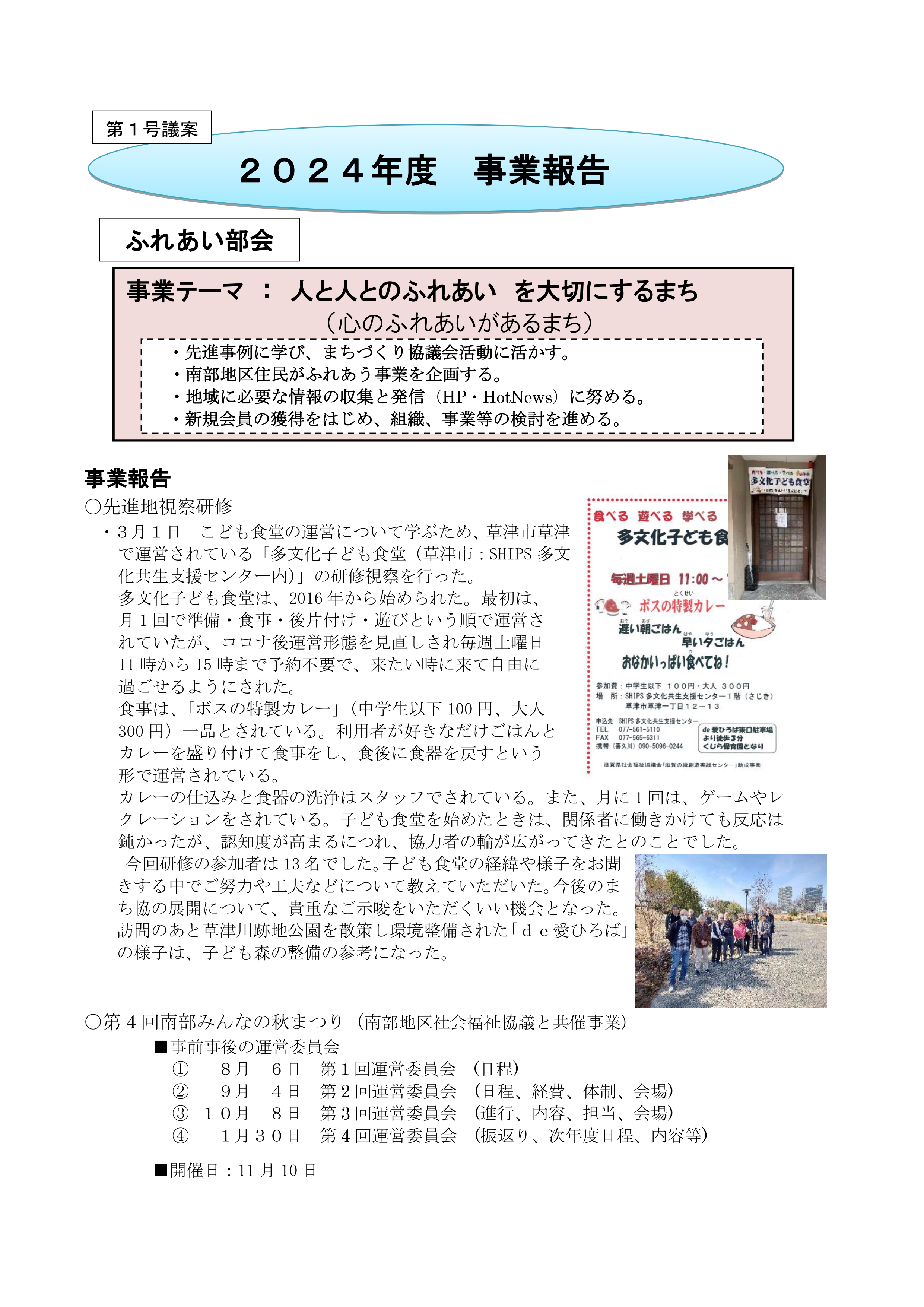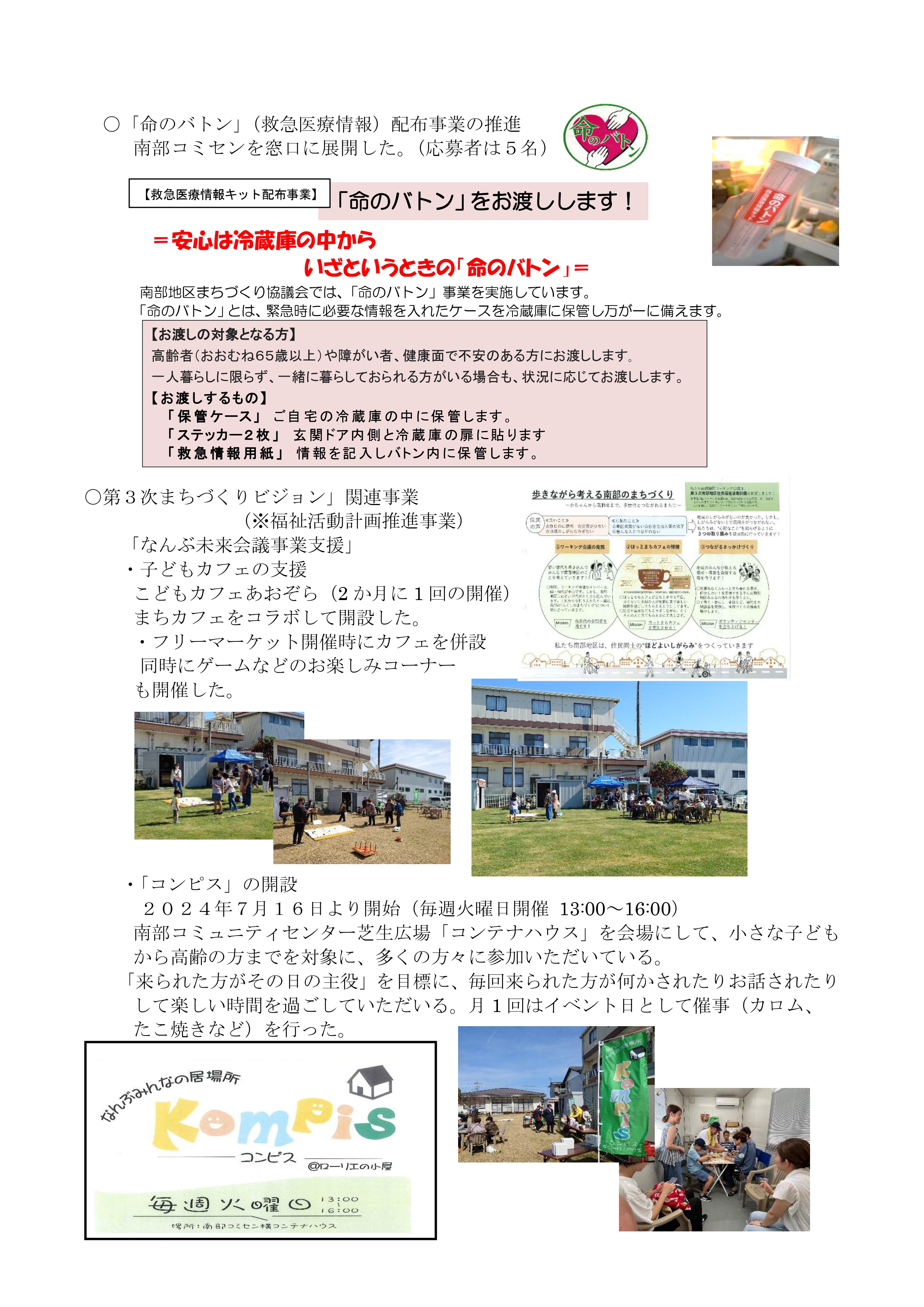 - ・老若男女が集える場つくり 「ほっとまちカフェ」の開設 ※南部地区住民福祉活動計画協賛