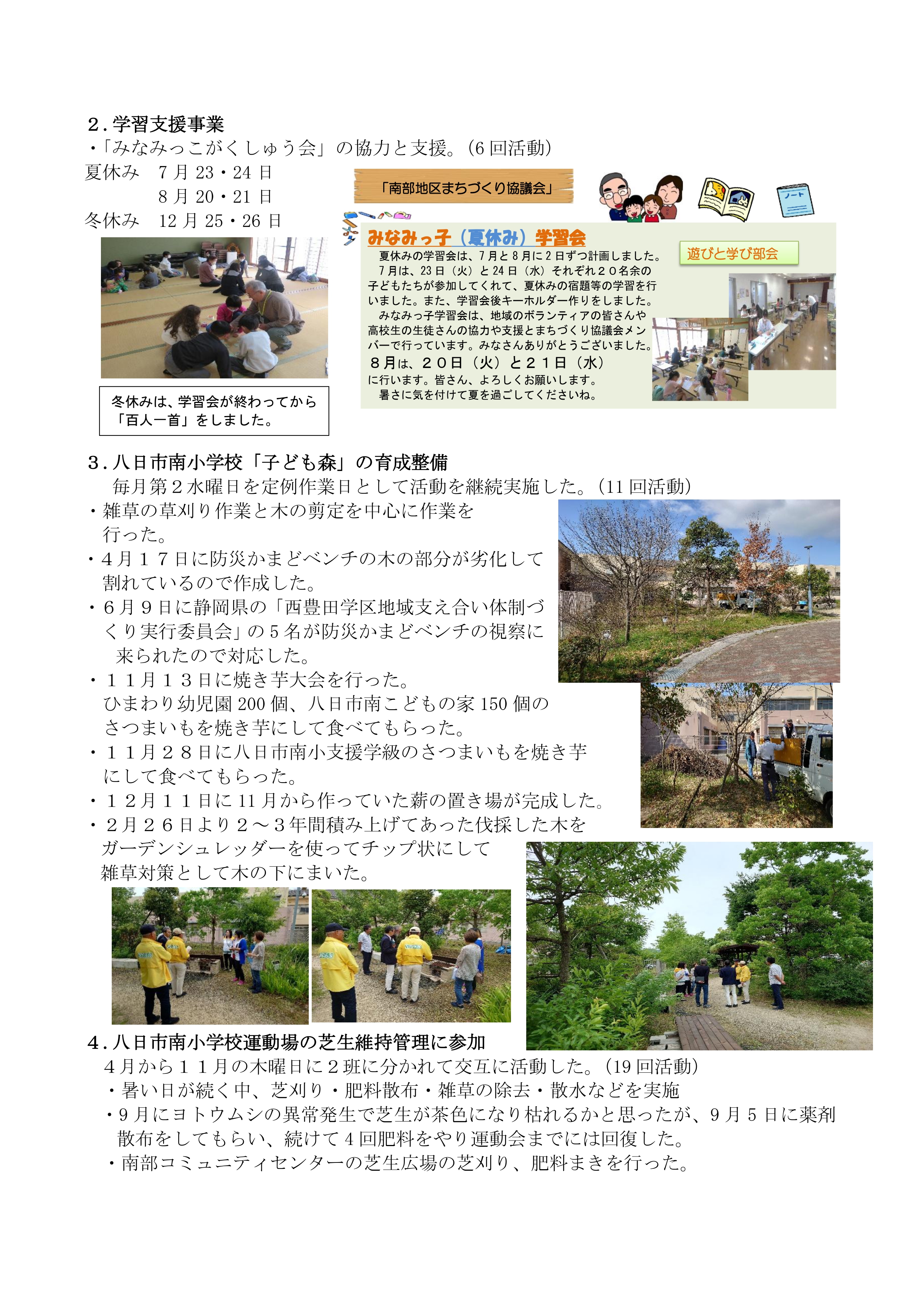 - ・八日市南小学校芝生の維持管理活動(まち協と有志による支援活動)