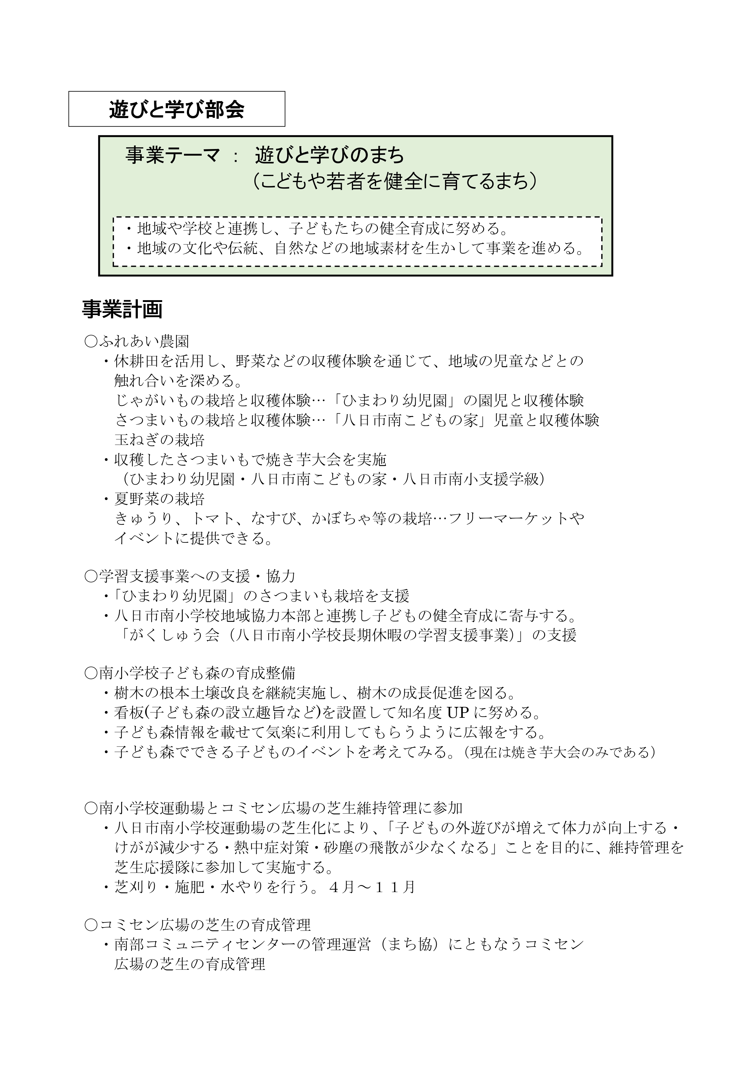 - 家庭教育:青少年教育(なんぶっ子、すこやかキッズ)