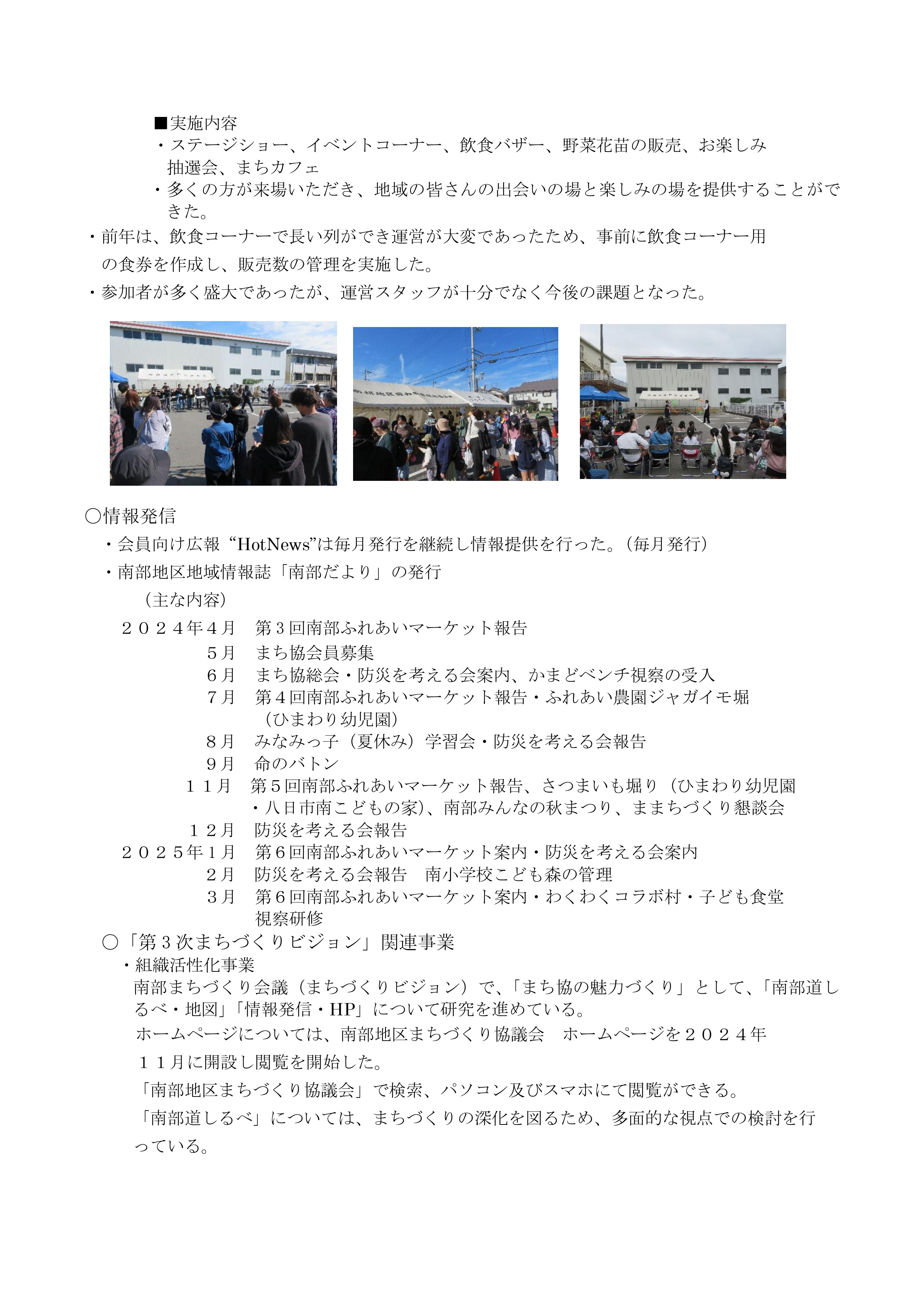- ・南部まつり(6月)の協賛・南部みんなの秋まつり(11月)の実施