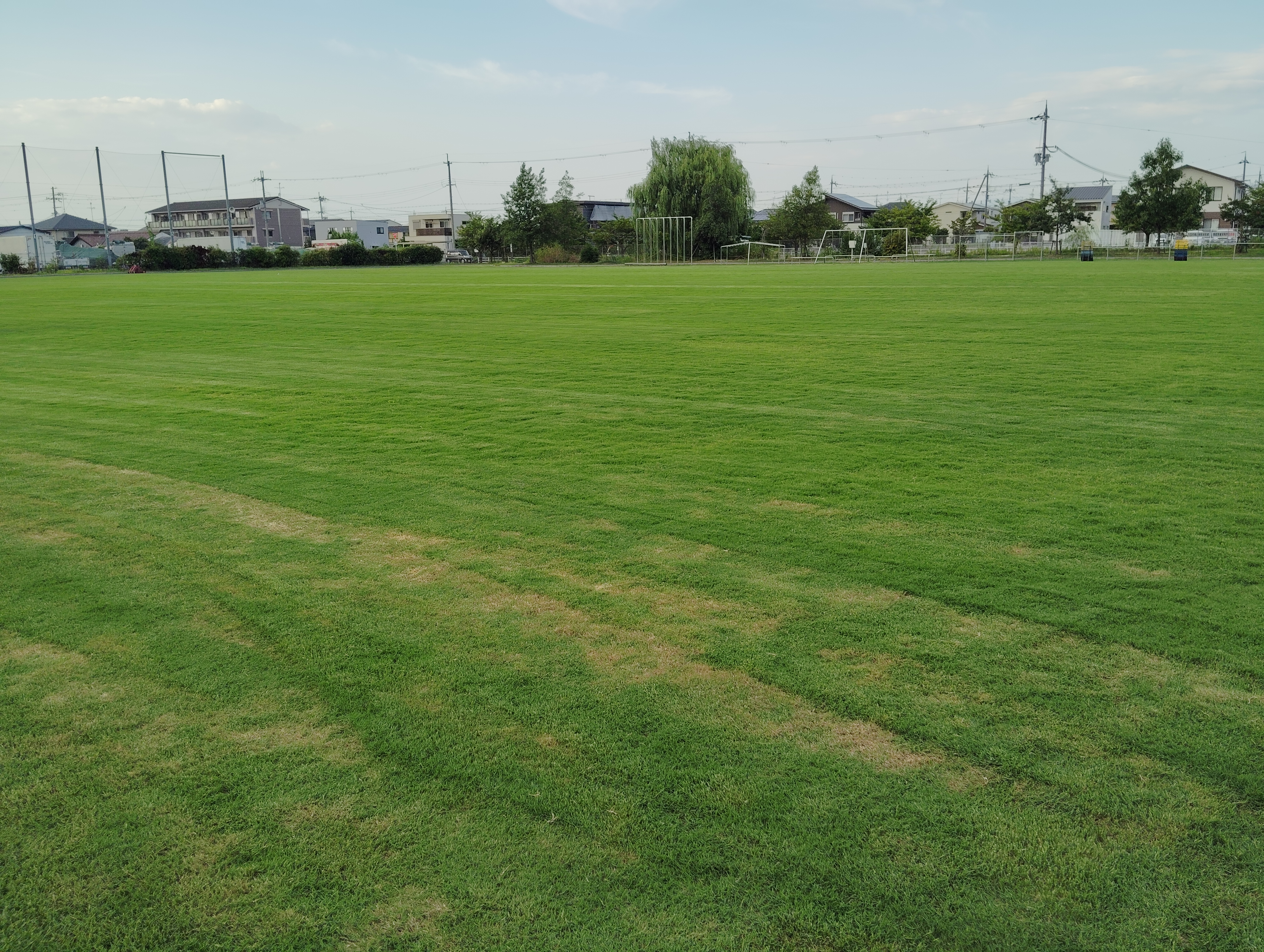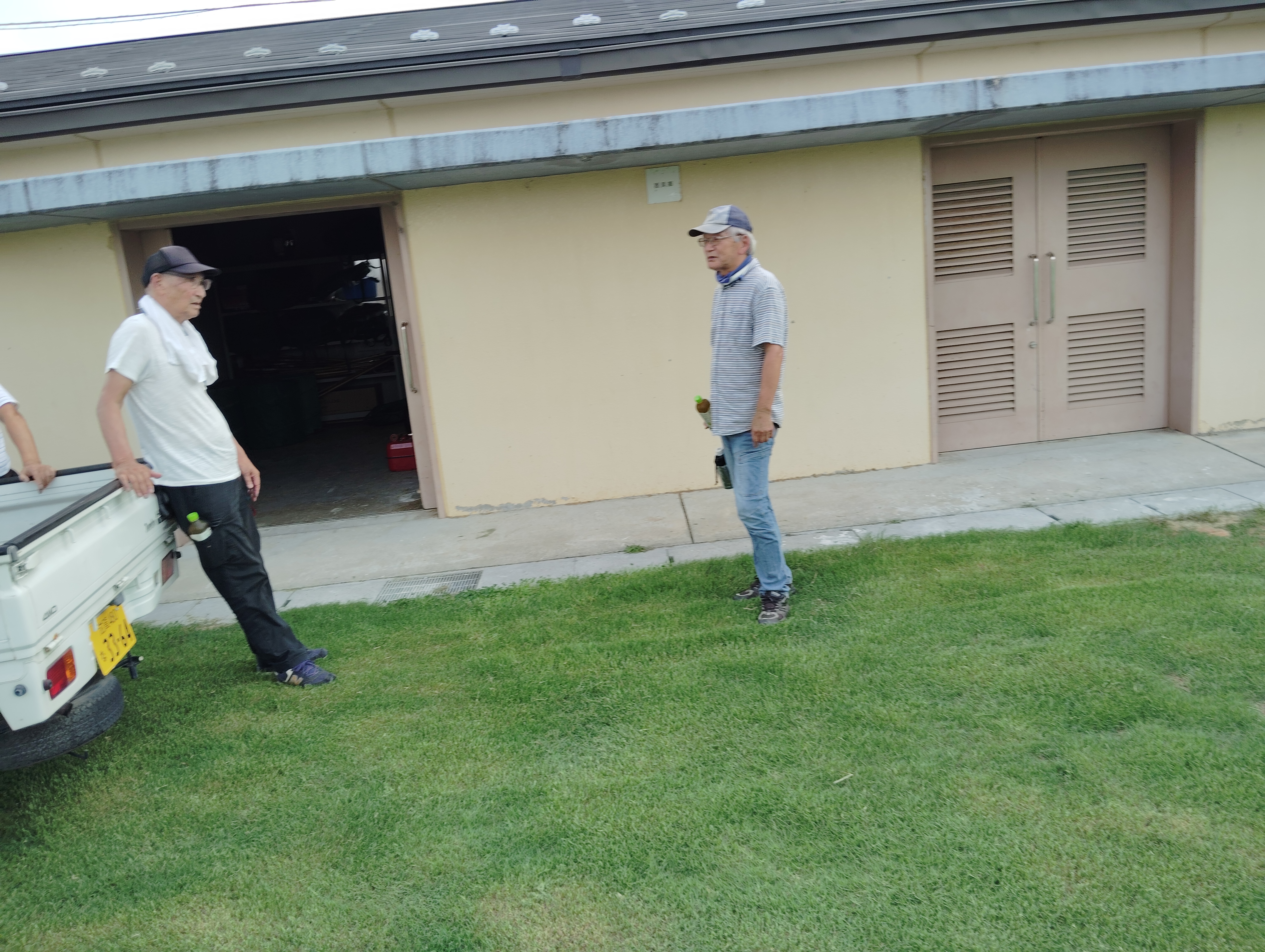 2025年8月21日 猛暑日の南小芝生管理 8月21日(木)16:00より南小の芝生管理を行いました。 お盆も終わり、2週間ぶりの南小学校のグランドです。 今日は全員で芝生を刈り、その後肥料の散布を行いました。 猛暑日、雨が降らない日が続いています。