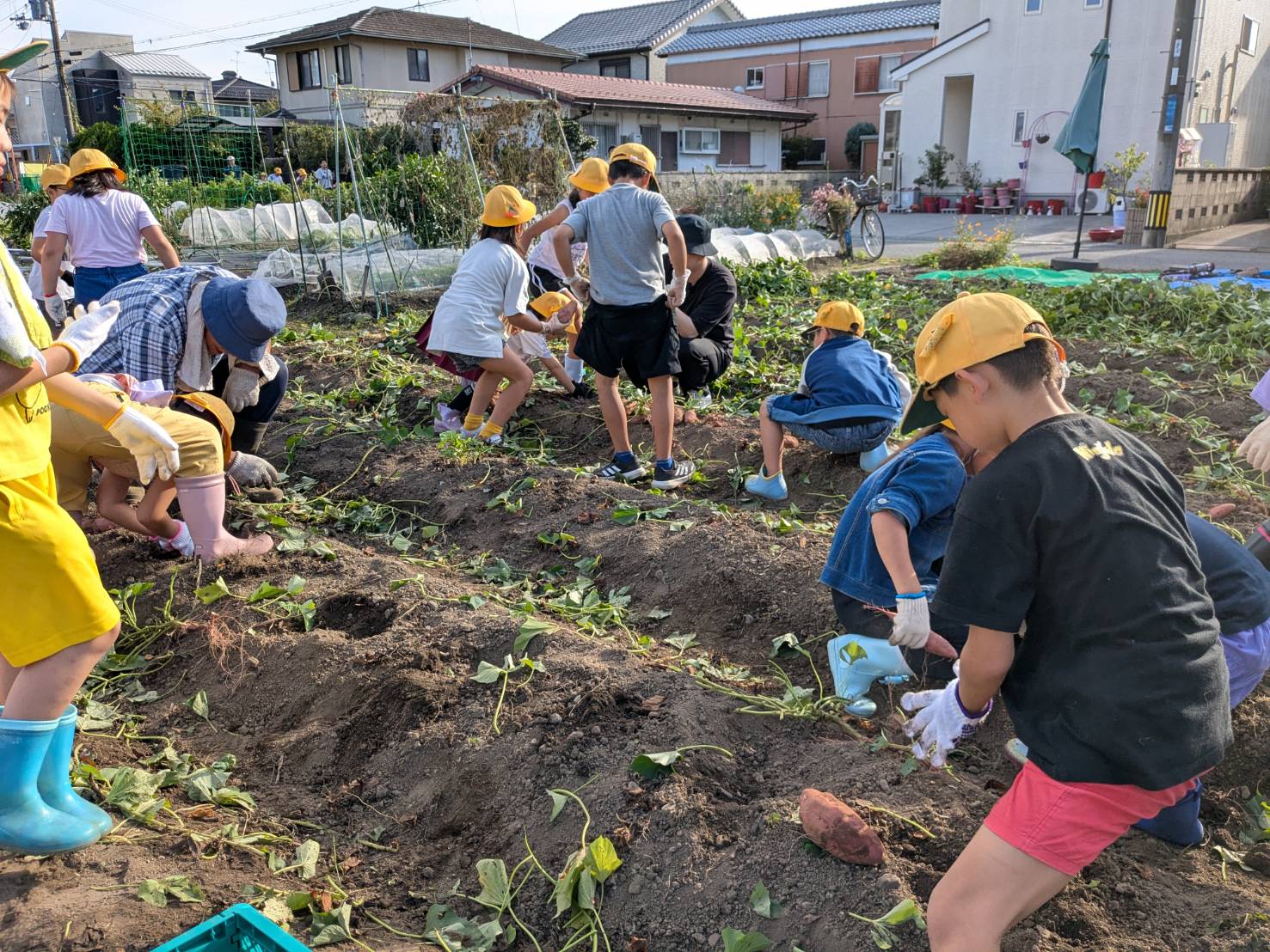 大きな芋が土の中から出てくると、子どもたちの大きな歓声が上がっていました。