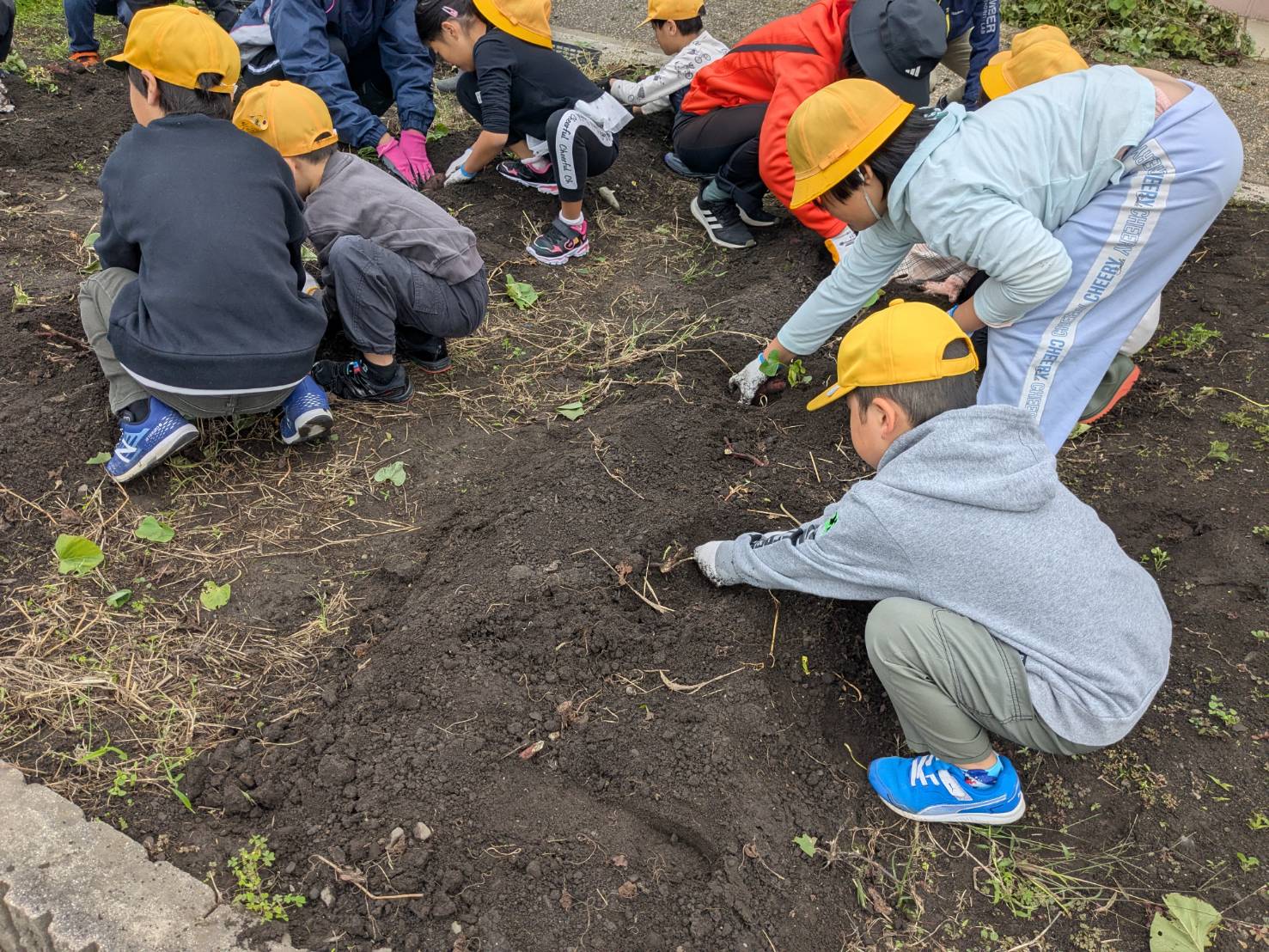 11月5日(水)9時より南小学校特別支援学級のさつまいも堀りのお手伝いをしました。
