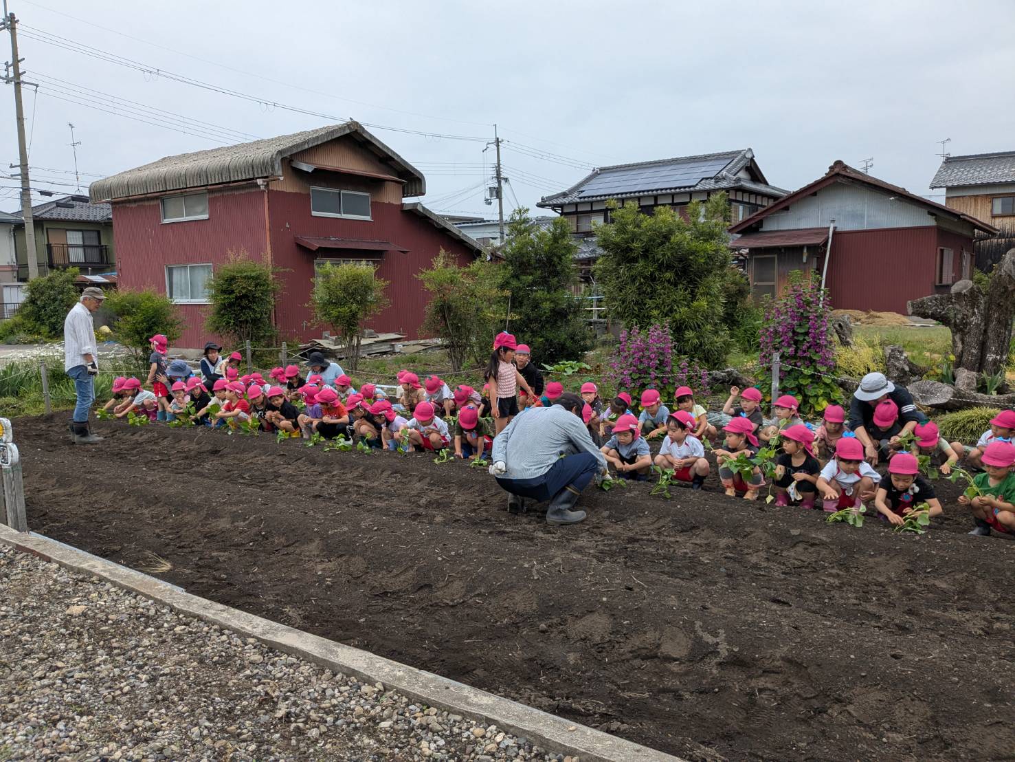 5月21日 ひまわり幼児園の畑でさつまいもの苗を植える 5月21日(水)9時過ぎより、ひまわり幼児園の畑で、園児と先生、まち協のメンバー70名ほどでさつまいもの苗を植えました。 10月ごろに収穫して、11月には子ども森で焼き芋大会を開く予定をしています。