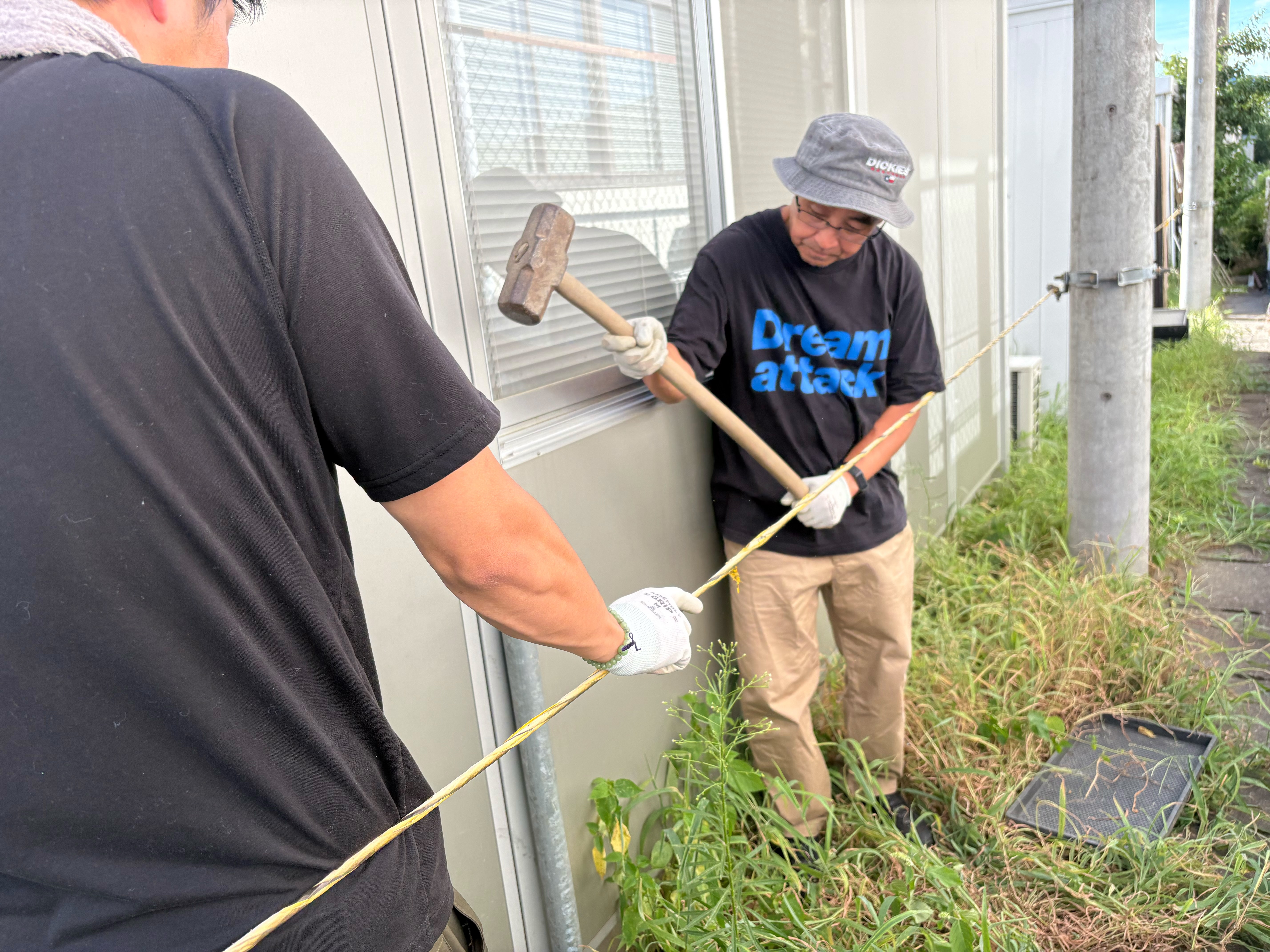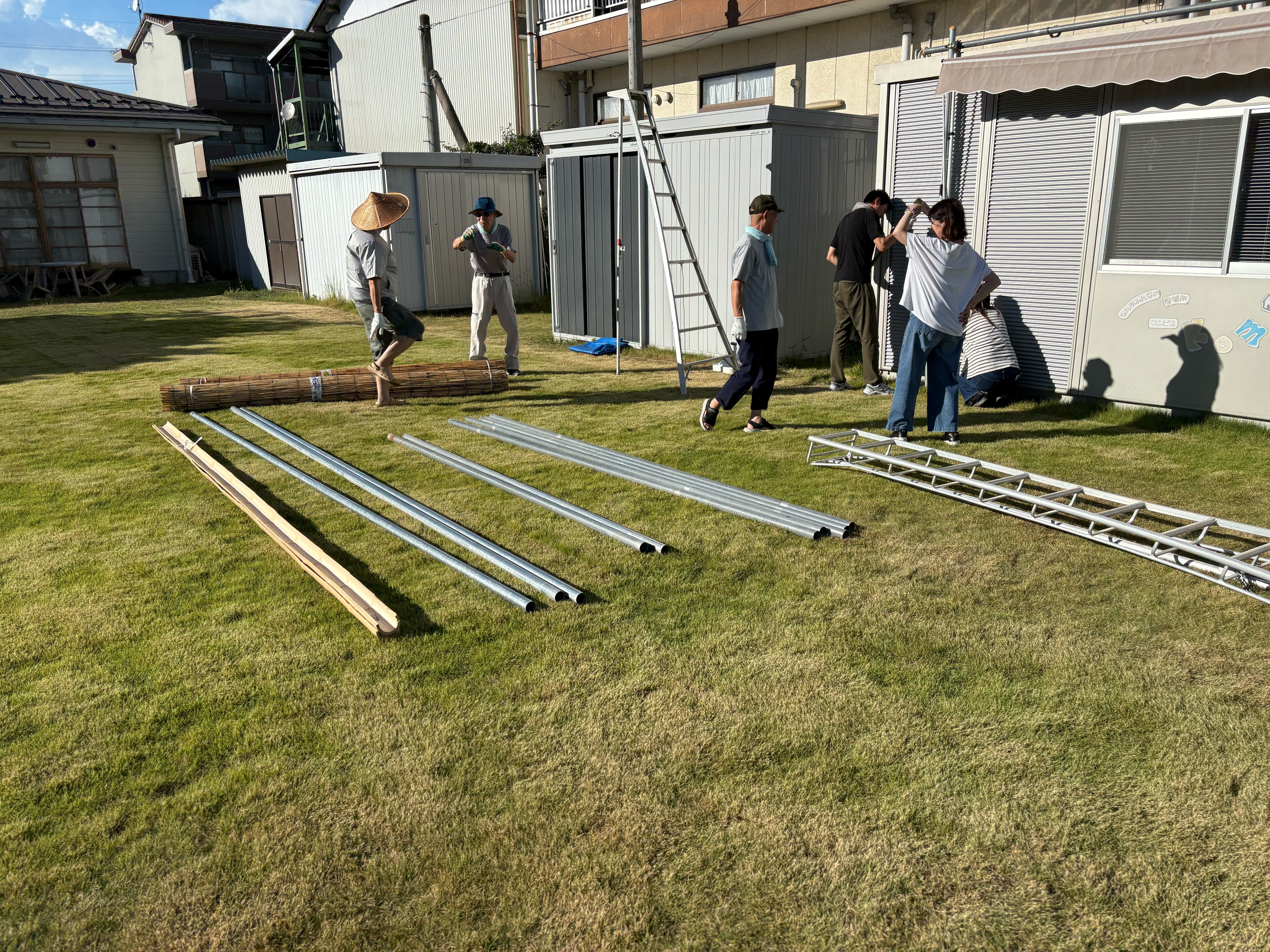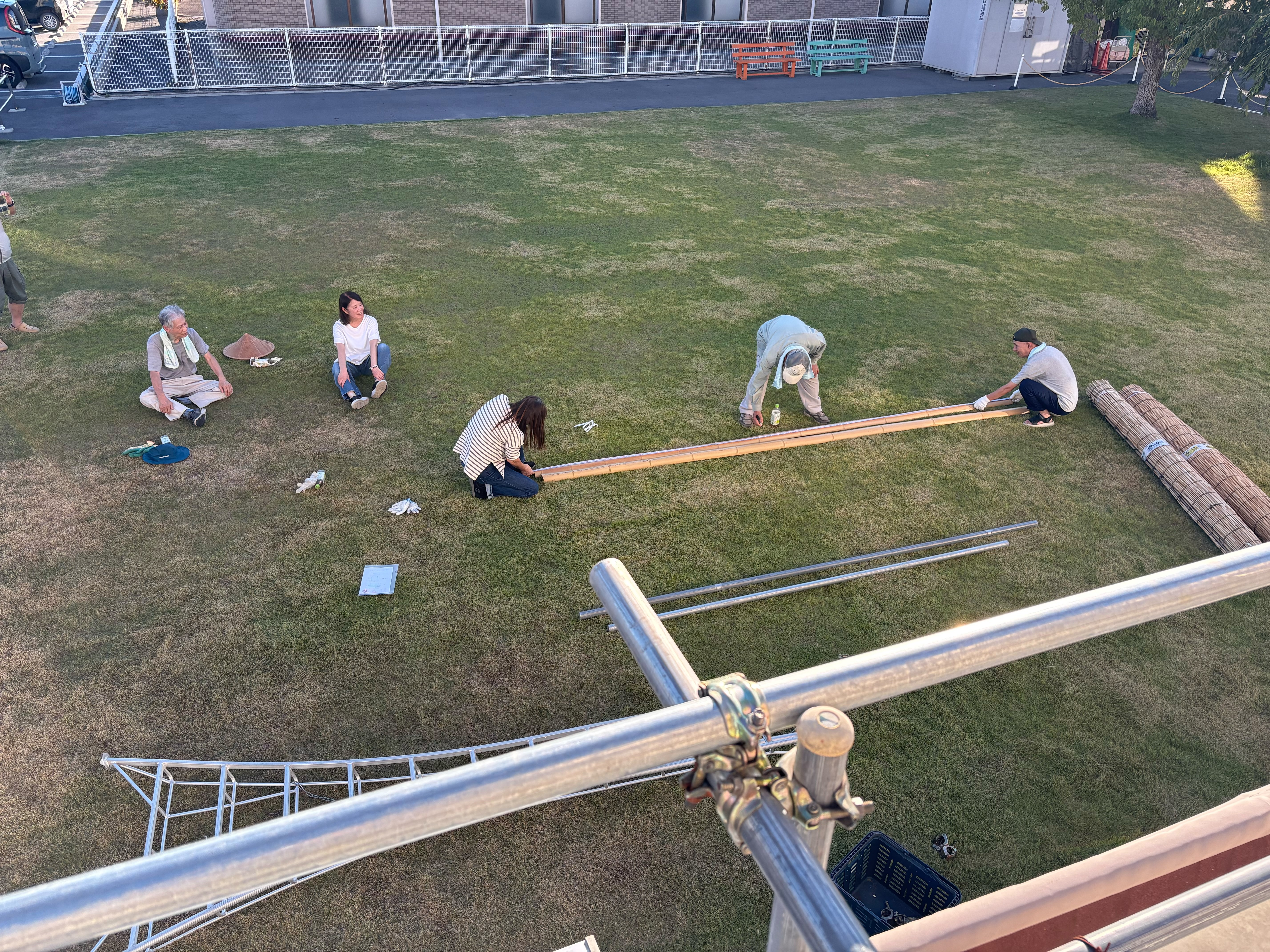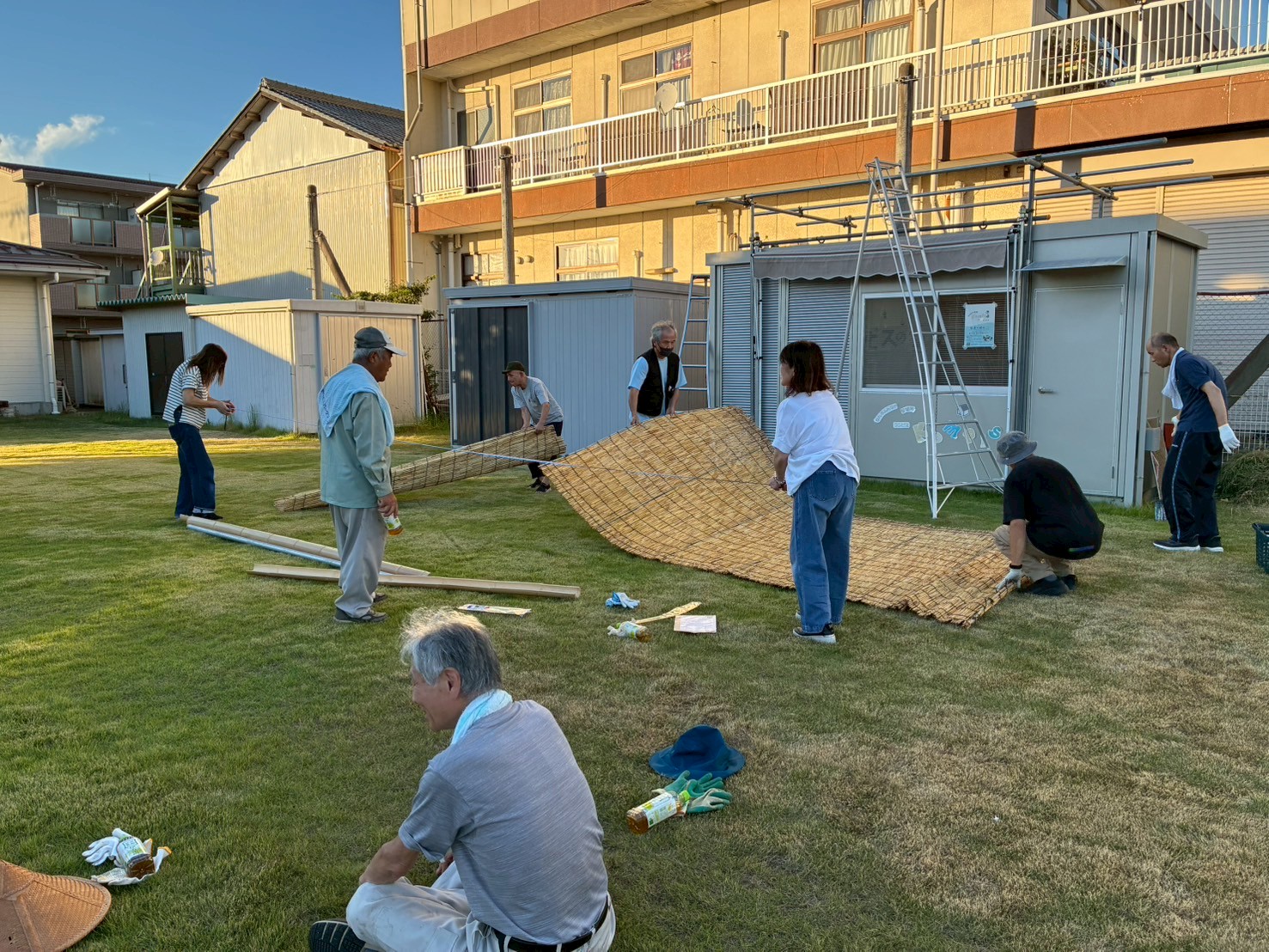 9月2日のコンピスはコンテナハウスによしずを設置いたしました 9月2日(火) 鳥居総監さんのもと、コンピスに参加いただいた方やなんぶ未来会議の皆さんでコンテナハウスによしずを設置いたしました。 まだまだ暑い日が続きます。すこしは涼しくなることを祈ってます。