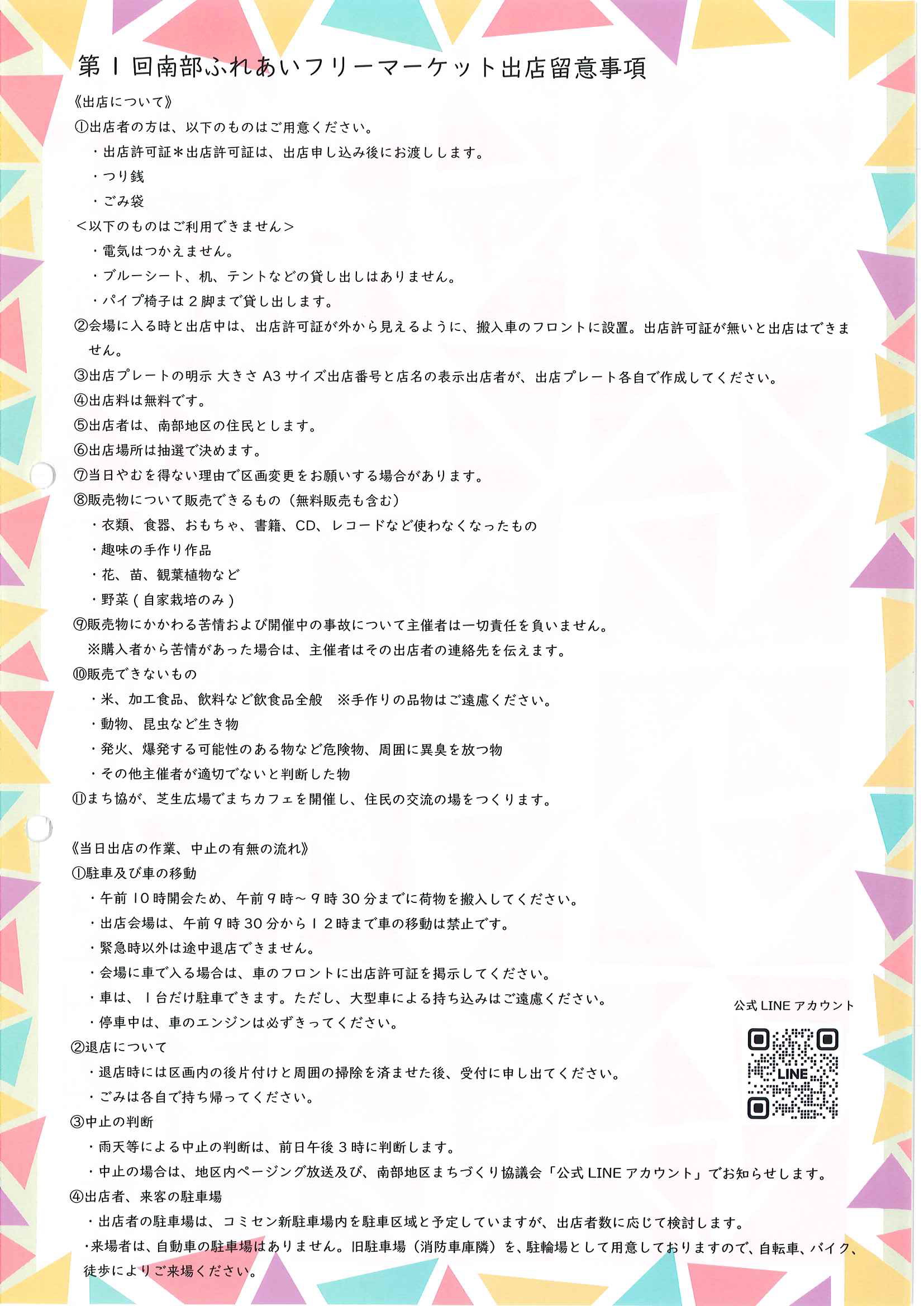 • 第1回南部ふれあいフリーマーケット出店留意事項