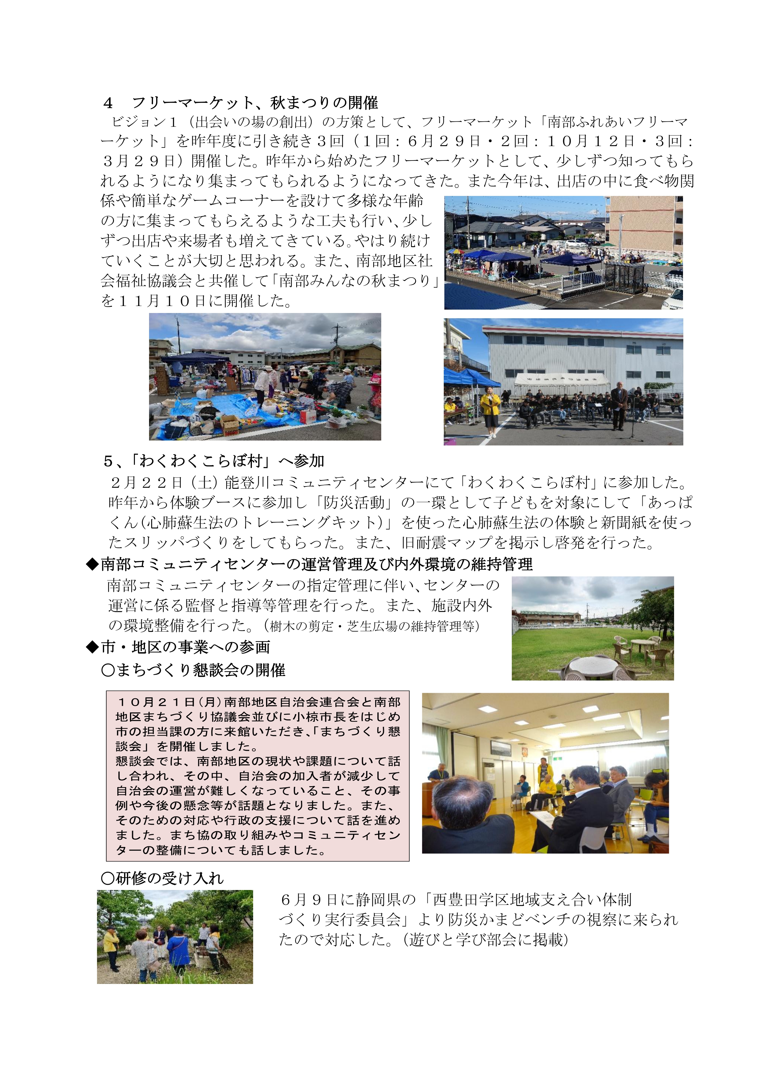 - ・南部まつり(6月)の協賛・南部みんなの秋まつり(11月)の実施