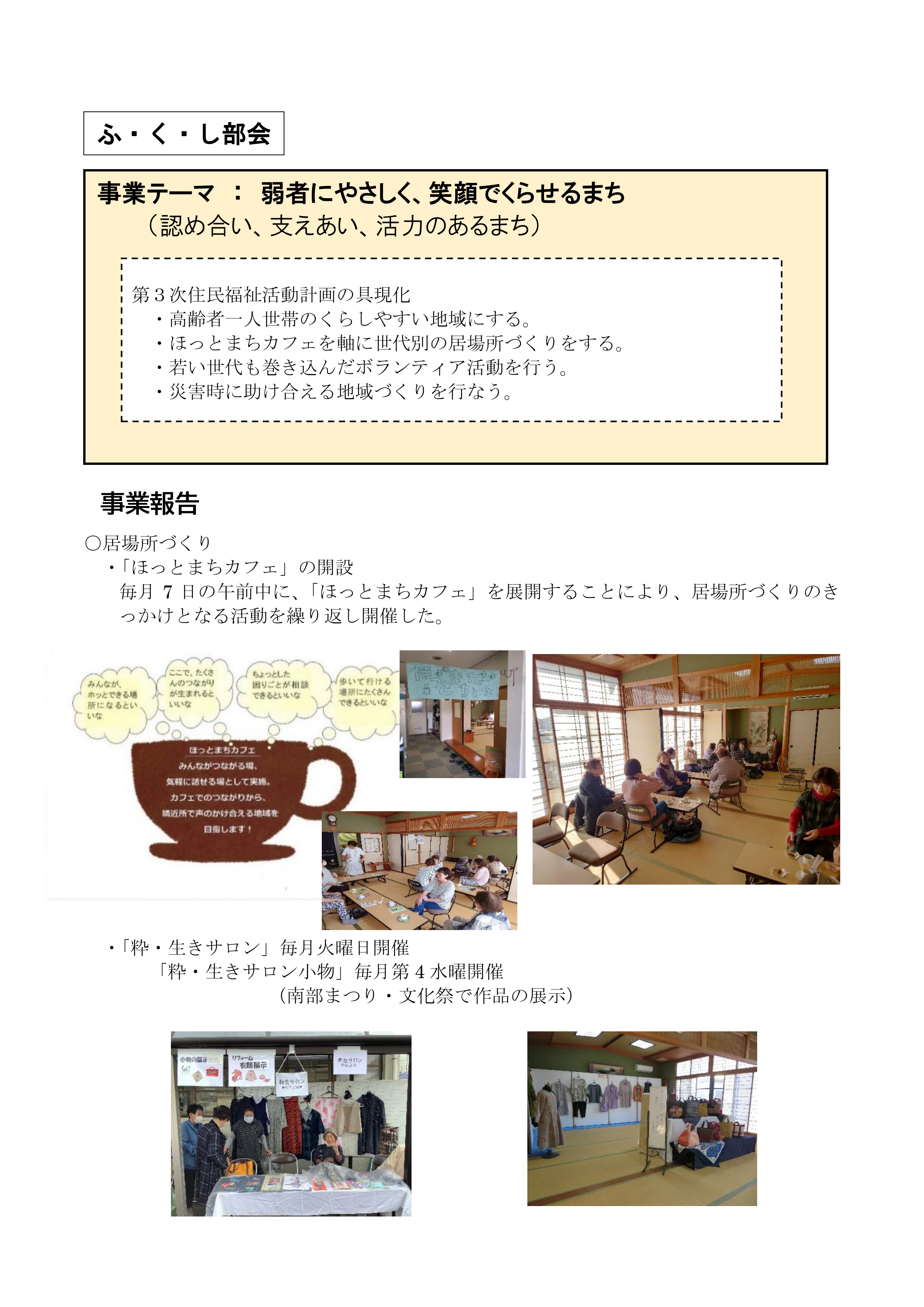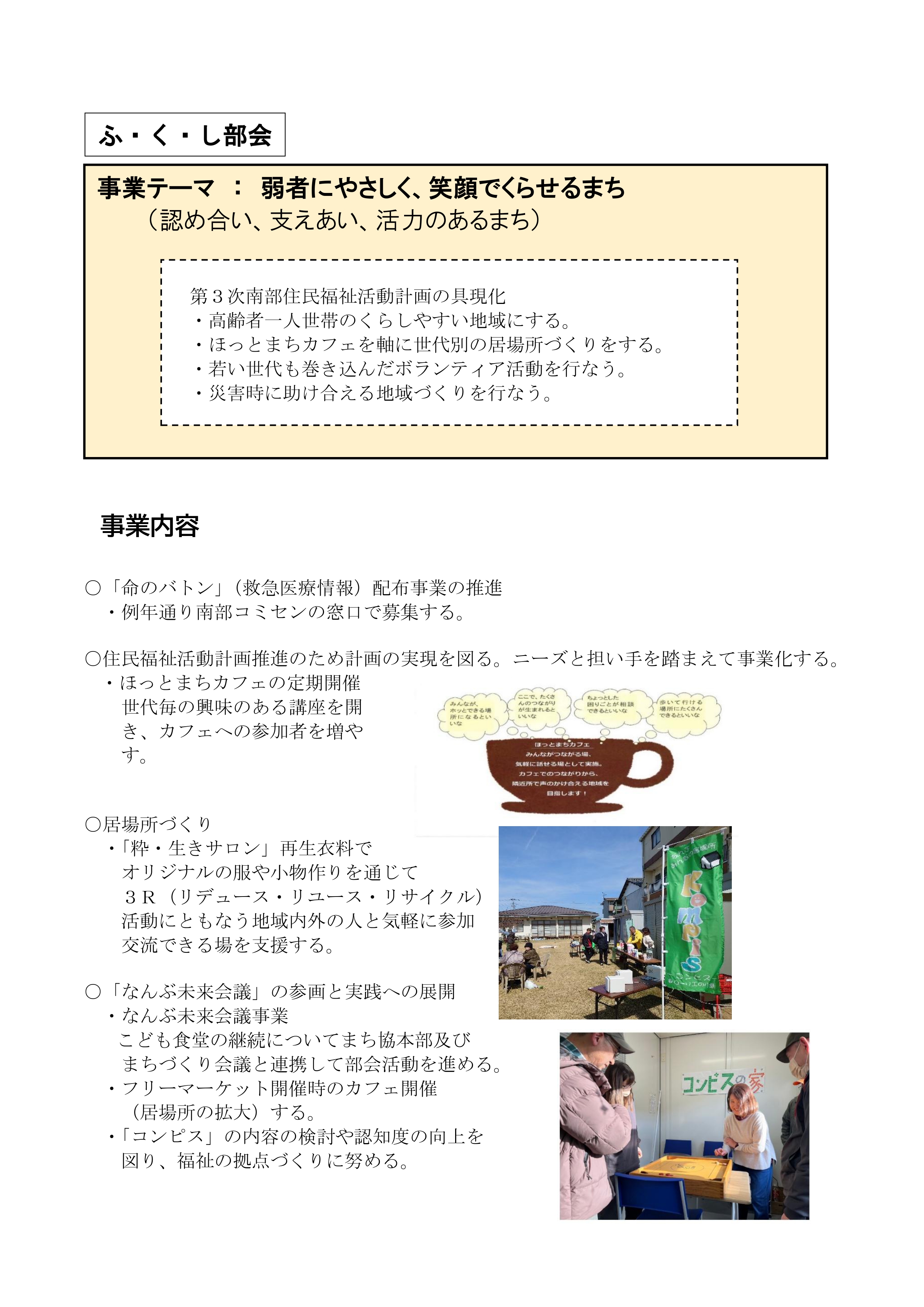 - ・老若男女が集える場つくり 「ほっとまちカフェ」の開設 ※南部地区住民福祉活動計画協賛