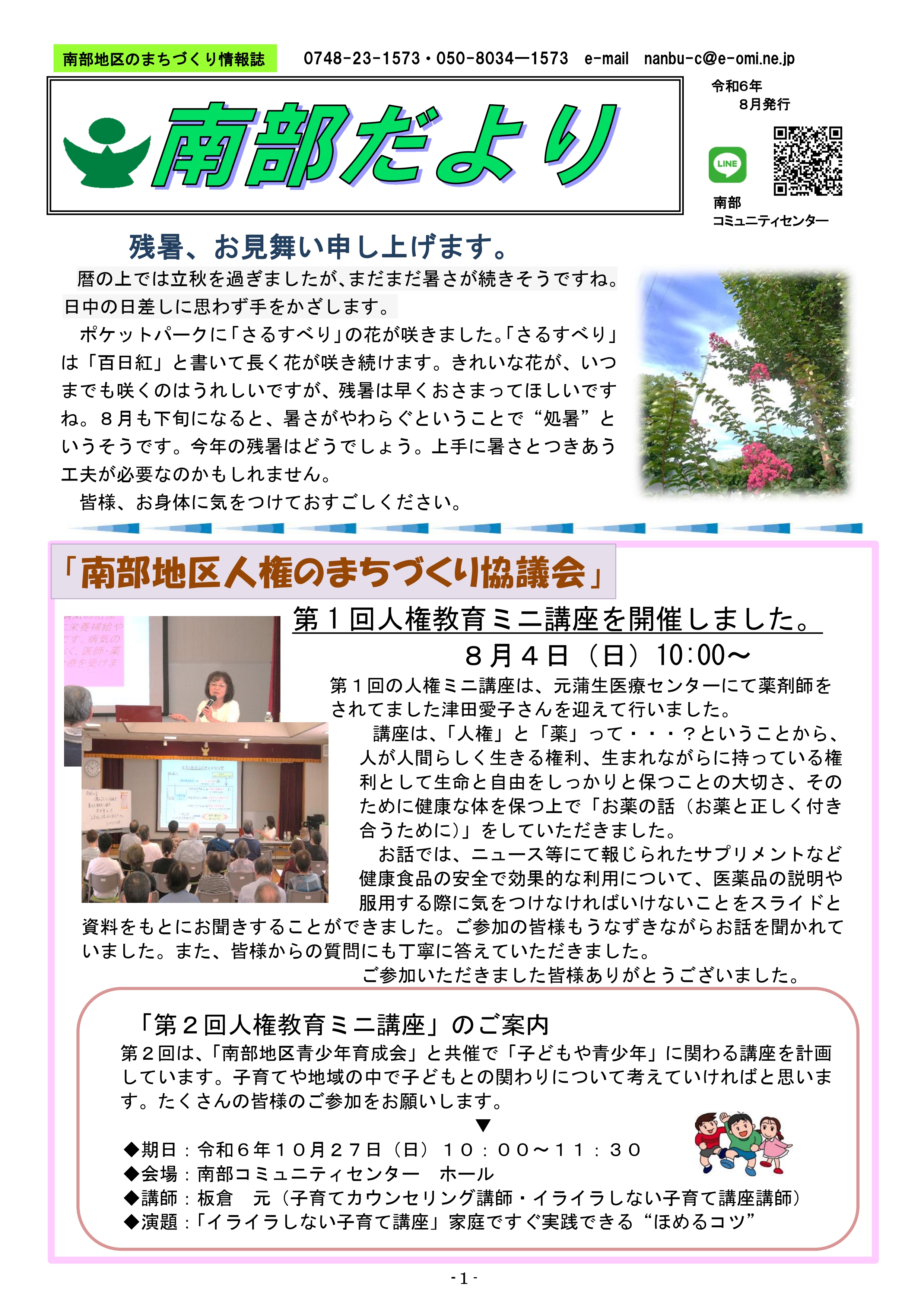 誰もが笑顔で暮らし、活力あふれるまち南部をめざして